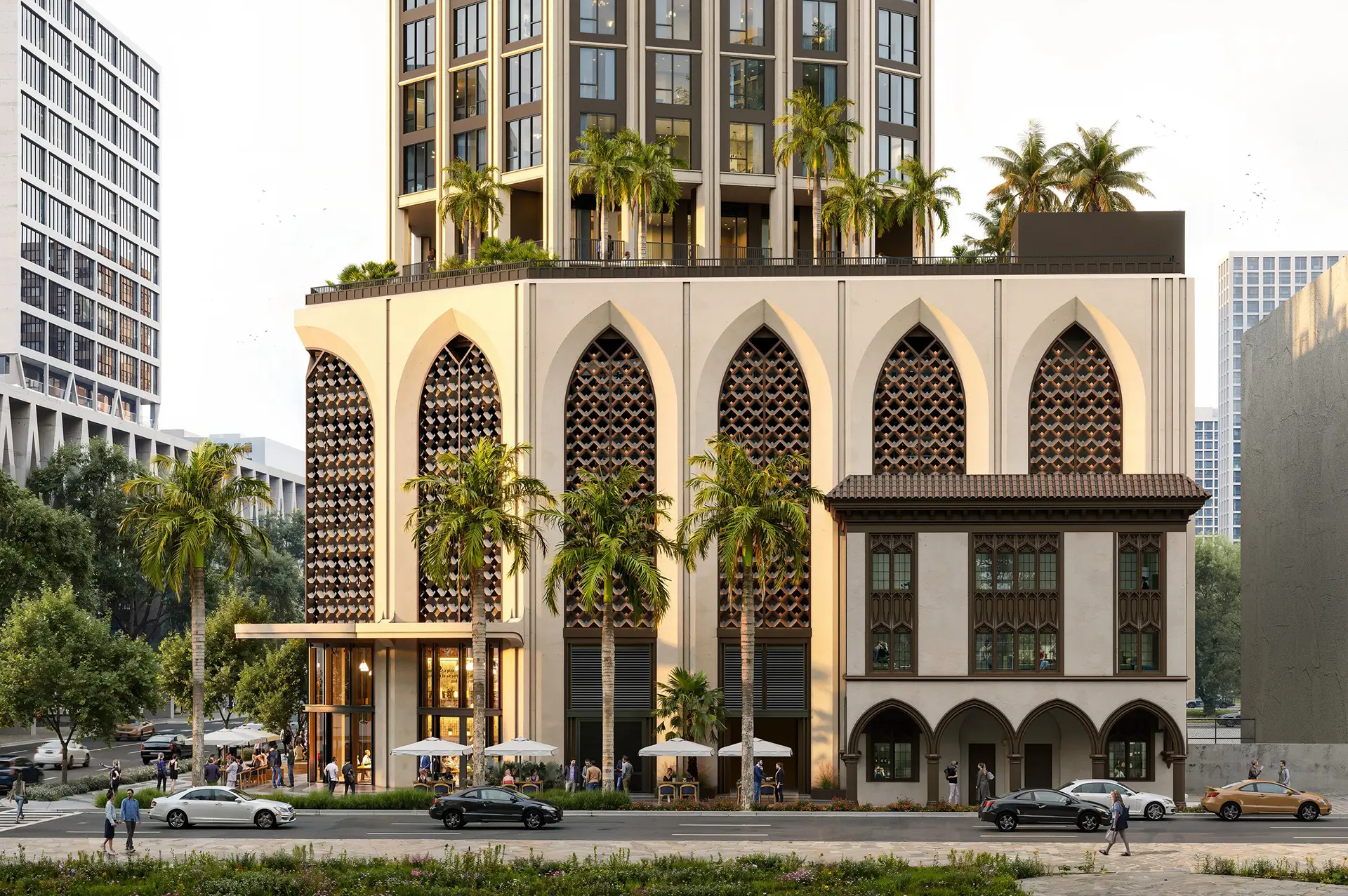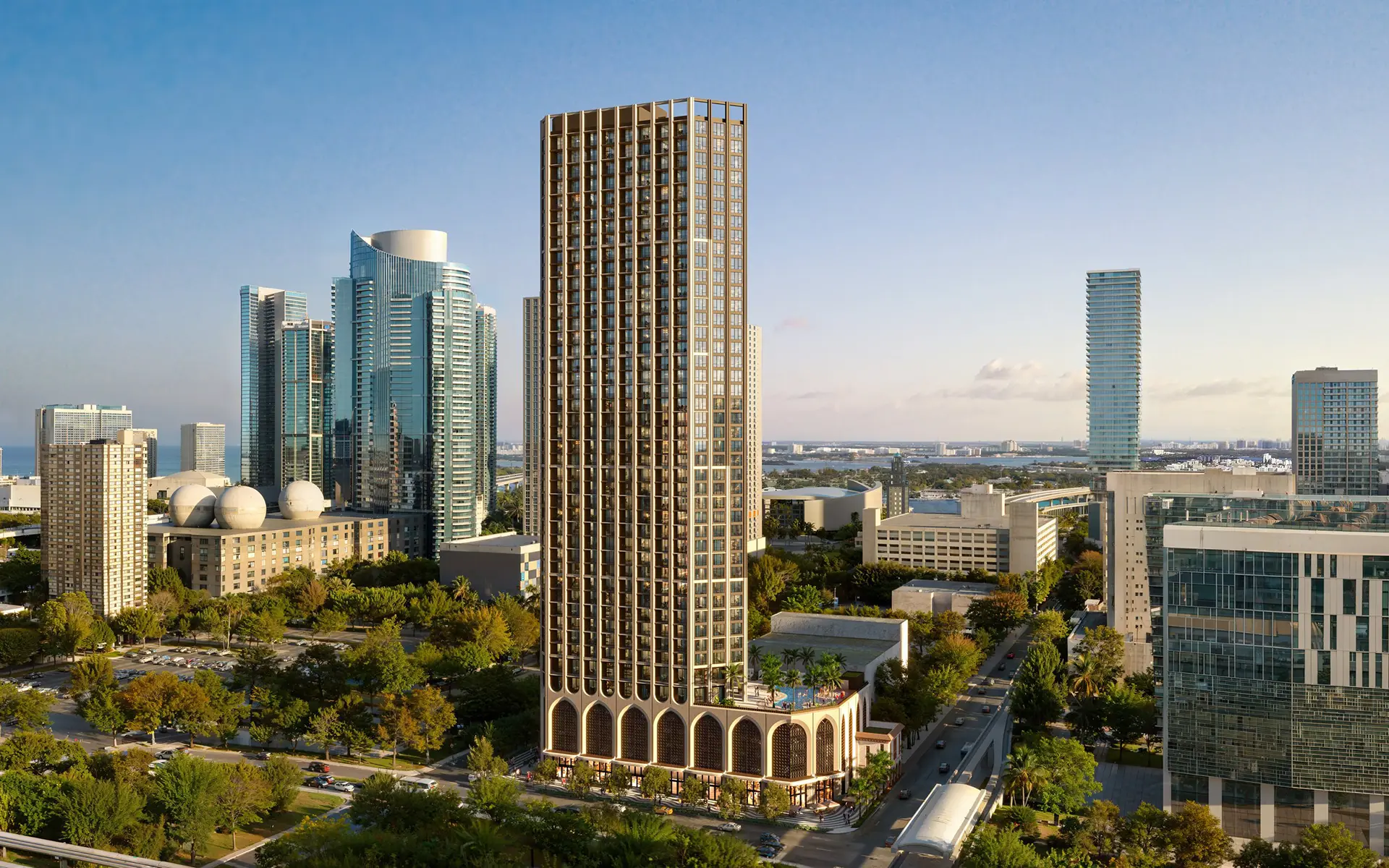First & Fifth is a 45-story, 700,000-sq.-ft. multifamily tower across from Brightline MiamiCentral. Blending Venetian-inspired arches with modern design, it features 500 upscale units, city views, and premier amenities. The preserved 1925 façade anchors this vibrant, transit-oriented development.
