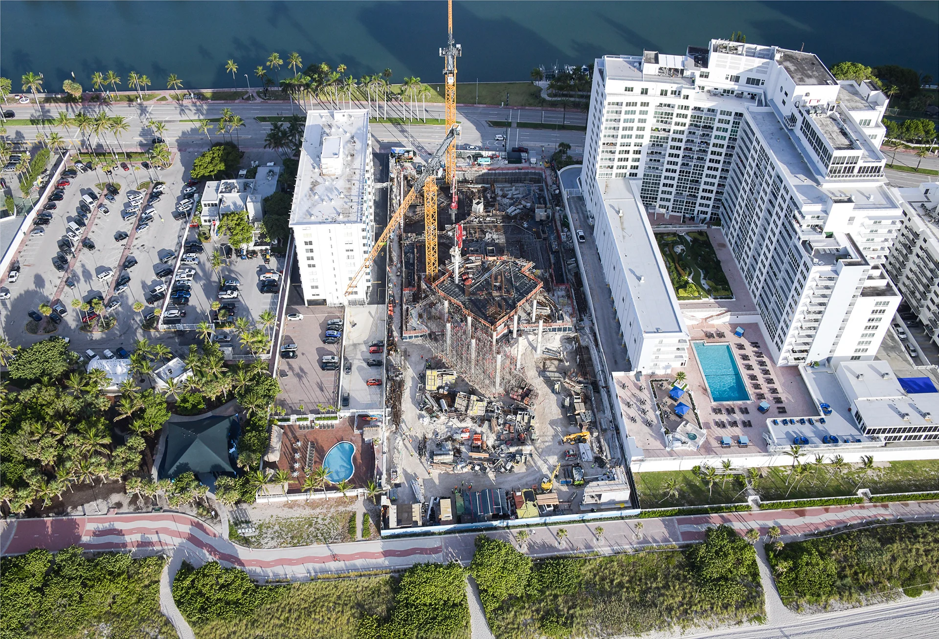 The Perigon emerges as a sculptural dialogue between Atlantic and Biscayne vistas; the 17‑story tower is lifted 45 ft above floodplain, creating a porous ground plane that invites both city and sea into its landscape. Its form—a series of subtly rotated volumes—maximizes 360-degree views while maintaining privacy, reflecting a studied tension between “organic” and “orthogonal” geometries . The façade’s cascading terraces and expansive glazing orchestrate a rhythmic interplay of light, shadow, and movement. Residences, ranging from two to four bedrooms, feature deep wrap‑around terraces, 10‑ft ceiling heights, and seamless indoor‑outdoor transitions. Anchored by a carved entry, lush gardens, and bespoke communal spaces, The Perigon elevates beachfront living into an architectural and experiential landmark.